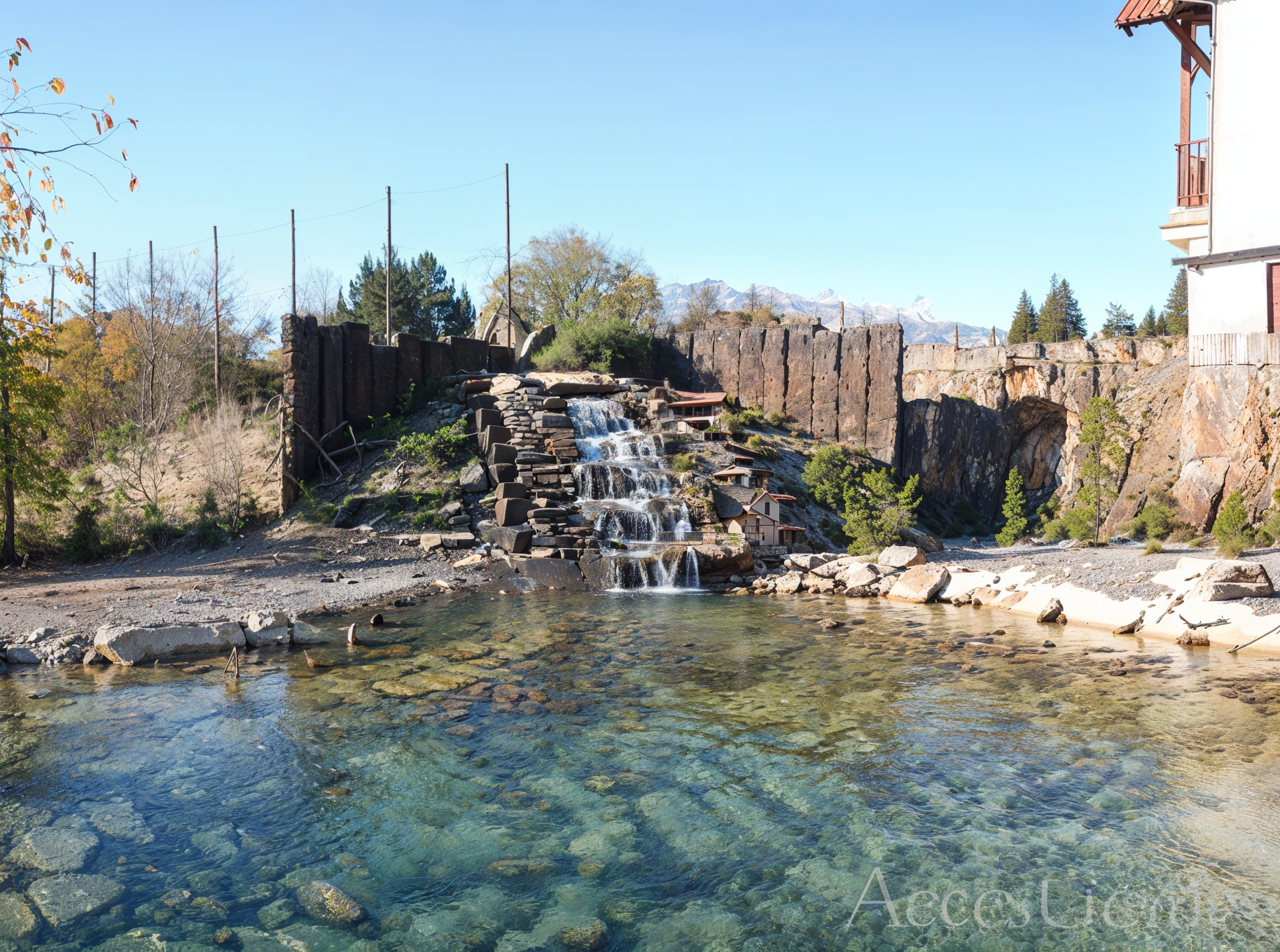 Stone cascades, waterfalls, and streams